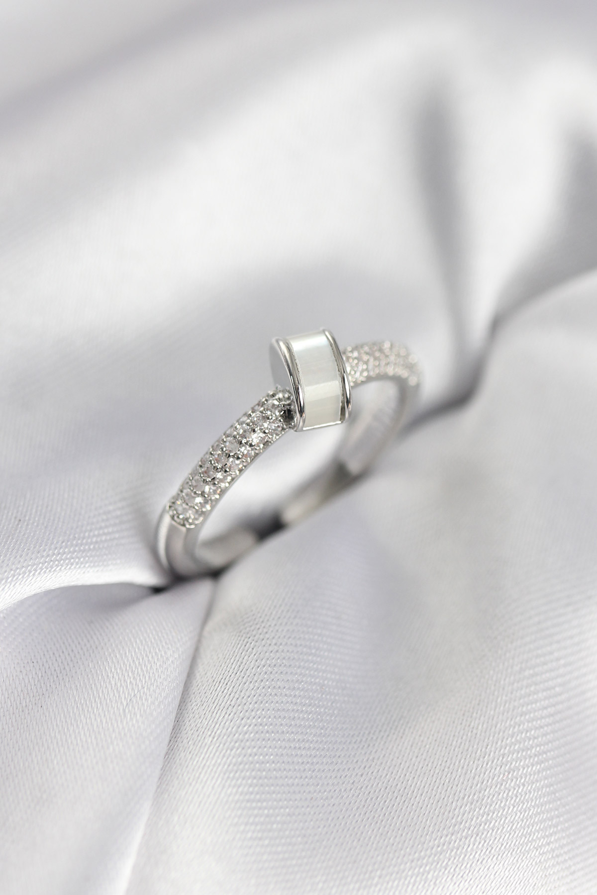 Zirkon Taşlı Sedefli Gümüş Renk Kadın Yüzük